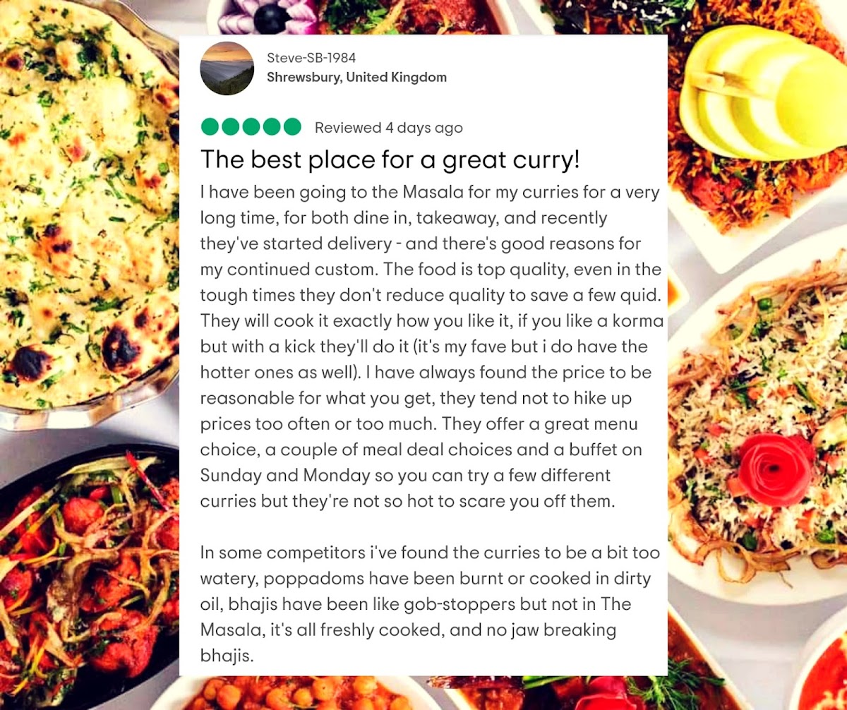 With every dish crafted to perfection and a memorable dining experience awaiting, The Masala isn't just another restaurant; it's an experience that embodies the very best of Indian cuisine in Shrewsbury. Whether you're catching up with friends or enjoying a night out, be sure to savor the magic of The Masala.